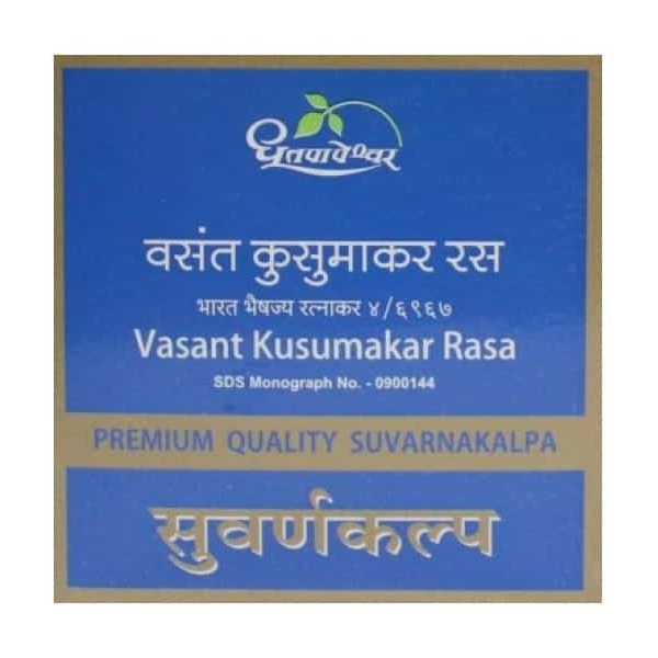 Dhootapapeshwar Vasant Kususmakar Rasa mostly used in Prameha, Madhumeha and its complications. It is excellent Rasayan, Vajikaran and Saptadhatuposhak yoga. It also relieves nervine irritation as well as a good haematinic. It is known for its aphrodisiac property as it invigorates Sexual ability.